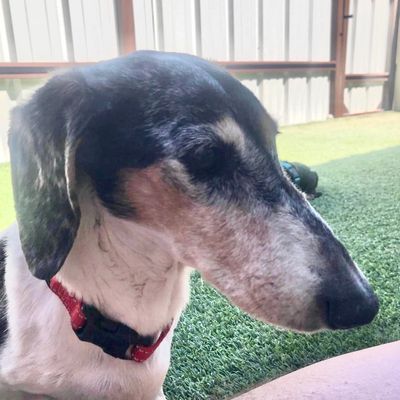 This is Pudge. She came to us September 2016 as an owner turn in. Pudge was born in 2003 and is a very laid back little lady. She loves pecan season when the pecans begin to fall and can often be found with her "collection" of pecans on her bed each evening. Pudge takes daily meds for thyroid issues. We sometimes struggle to keep weight on this baby but her blood tests and exams continue to show she is healthy. Pudge is a sweet and docile little girl.