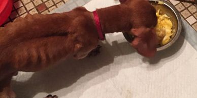 After several months Trooper’s glucose levels were under control as were his thyroid levels. Trooper had his teeth cleaned and his body was free of infection. The one thing Trooper never had a problem with was demanding his food on time. Rick feeds him at 6 am every morning before his insulin shot, and I scramble eggs for him every evening so he can receive his second shot.